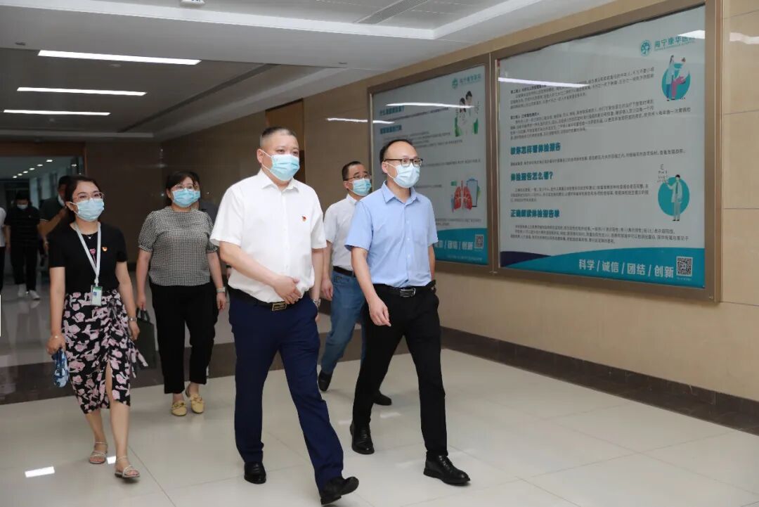 7月20日,海宁市委常委、组织部长王李涛一行莅临海宁康华医院就民营医院党建工作开展调研。调研组一行实地查看了门诊、一站式服务站、体检中心、党建活动阵地,通过听取汇报、现场访谈等方式,详细了解了海宁康华医院经营状况、基层党建工作开展情况,海宁市卫健局党委副书记杨利忠、海宁康华医院党委班子等相关人员陪同调研。