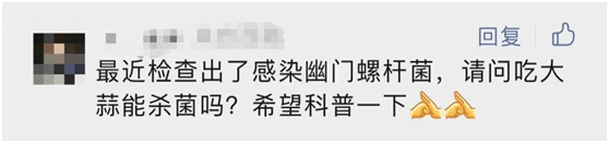 虽然有研究表明,在体外,大蒜素对幽门螺杆菌有抑制作用,但这并不能说明通过吃大蒜就可以杀灭幽门螺杆菌。毕竟,仅靠日常饮食中吃的几瓣蒜,根本达不到能抑制幽门螺杆菌的大蒜素浓度。目前经典的根除幽门螺杆菌的方案,往往需要多种抗生素的协同使用,所以还是建议到医院接受专业治疗。