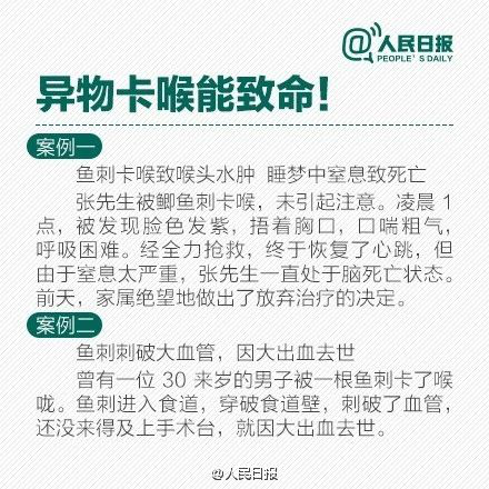 另外,他指出,万一不慎误咽鱼骨,应停止进食,可先行尝试将异物咯出,若不成功应及时到医院让医生通过器械取出。