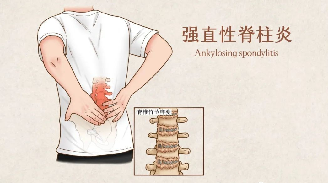 主要侵犯脊柱,多见于青壮年男性,是“青年男性致残杀手”。主要表现为夜间及早晨起床时腰痛,也可出现非对称性的下肢大关节炎,未经治疗出现脊柱畸形,严重影响生活质量。多有家族史,90%以上患者HLA-B27阳性。