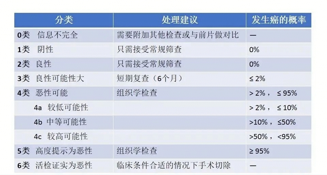 乳腺癌常被称为“粉红杀手”,是影响女性健康最常见的恶性肿瘤之一。 但据数据显示:早期发现的乳腺癌治愈率可以高达 80%以上。 乳腺钼靶是早期乳腺癌筛查的重要手段之一。 乳腺疾病是每个女性都要面对的问题,定期检查必不可少。 女性重视乳腺健康,除了日常自我检测进行初步判断以外,最好做好乳腺的定期检查。高风险人群可适当增加筛查频率,做到早筛查,早诊断,早治疗,远离乳腺疾病。 康华医院健康管理中心新引的进高端数字化-乳腺钼靶机。 Q1:什么是乳腺钼靶检查? 乳腺钼靶检查全称为乳腺X线钼靶摄影检查,是X线检查的一种,广泛应用于各种乳腺疾病的筛查和诊断。利用X光投射到乳房上面,穿过乳房以后对乳房的影像进行一个分析诊断,和乳腺超声一样,是一种无创性检查。 可以显示乳腺结节、肿块、钙化、腋窝及乳腺皮肤等情况,特别是对乳腺钙化的显示非常敏感,可以显示乳腺内直径约0.1mm的微钙化。因此对临床中以钙化为主的病变、特别是以少许微小钙化为唯一表现的早期乳腺癌来说,乳腺钼靶检查在目前乳腺影像学检查中有不可取代的优势地位。 Q2:我已经做过了乳腺B超,还需要做钼靶吗? 这是最常见的问题了,很多人认为做了B超没问题,乳腺就没问题了,真是这样吗?超声看小肿块比较强,而钼靶看钙化灶比较强,二者各有各的特长,钼靶与B超互相配合,才可以做到全面诊断,不会遗漏。 乳腺钼靶检查一般建议40岁开始,但对于乳腺癌高危人群可将筛查起始年龄提前到20岁。对于40岁以上的女性,建议每1-2年定期做乳腺钼靶检查。 Q3:钙化灶是什么? 钙化灶不是一个疾病的名称,而是不同疾病引起的一种现象。 引起乳腺钙化灶的原因,有良性疾病和恶性疾病,一般粗大的钙化是良性的,观察即可,但细小的钙化就需要引起重视,这种细小的钙化往往只有钼靶才可以检查出来,而超声无法发现,对于较多的细小钙化往往需要手术,及时发现潜在的恶性病变。 什么样的钙化灶要引起重视? 1)孤立丛状微小钙化,直径0.5mm以下,每平方厘米内,超过5-10枚; 2)成群无法计数的微小钙化,或大小不等的钙化,但以微小钙化为主且密集分布于某一区域; 3)小线虫状、泥沙或针尖状、线样/分支状钙化; 4)病变区内及其附近同时发现钙化,或仅在病变区边缘发现钙化; 5)沿乳导管方向,密集分布的钙化等。 Q4:钼靶检查怎么做?听说很疼? 完整的钼靶拍摄对每侧乳腺需要做两个不同体位的摄片,即头尾位(CC)和内外斜位(MLO),为了获得质量良好的影像,拍片的时候必须对乳房进行充分的压迫,拍摄过程很短,有一定不适,但一般都能接受,拍好后就会放开。 最佳的钼靶检查时期建议在每月月经结束之后的一周左右进行,此时拍摄对乳腺结构显示更加清晰。另外,由于此阶段乳腺生理性增生的疼痛感减轻,患者在检查时由拍摄板压迫所带来的不适感减轻。 Q5:钼靶检查有没有辐射? 有,但是剂量非常低。 在此不得不介绍一下钼靶辐射:单次乳腺钼靶检查辐射剂量仅为0.3msv,相当于做一次短程飞机所受的辐射剂量。对于普通成年人来说,单次钼靶检查的辐射计量是安全的。 孕期患者从胎儿安全的角度考虑不建议做钼靶检查。 Q6:什么是BI-RADS分级? 最后,教你如何看报告。 乳腺影像数据报告系统(BI-RADS)是美国放射学院制定的乳腺影像诊断规范,经过多次修改,目前临床上得到广泛应用。具体分级如下: Q7:钼靶检查注意事项 1)在女性整个月经周期中,因为受到各种激素的影响,乳腺也会发生一些生理性的增生与变化,通常月经干净后的7-10天是检查乳腺的最佳时间。对于绝经后的女性由于体内激素减少,受内分泌激素影响比较小,因而可以随意选择检查时间。 2)检查时如有相关检查结果(如乳腺B超或MRI)请随身携带,以协助诊断。 3)怀孕和备孕的患者,请提前告知检查医生,建议等分娩后再进行检查。 4)有过隆胸手术的患者要告诉医务人员。 温馨提示 报告一定要给医生看,应以医生的诊断意见为主。此外,仅仅凭一张钼靶报告很难全面了解乳腺疾病,临床医生会结合体检、病史、超声等才能全面了解乳腺的整体情况。 定期的乳腺X线筛查能够做到早期发现、早期诊断、早期治疗,使乳腺癌的死亡率下降。所以,建议满足条件的女性患者定期钼靶检查。