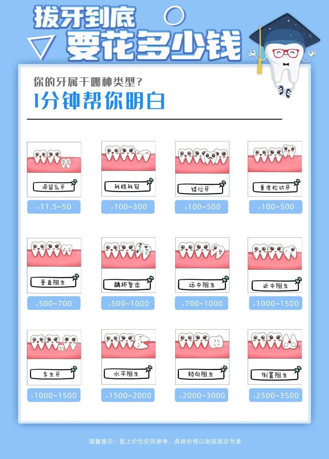 下面这个图仅做参考,不同地方、不同拔牙方法,收费差异不同。