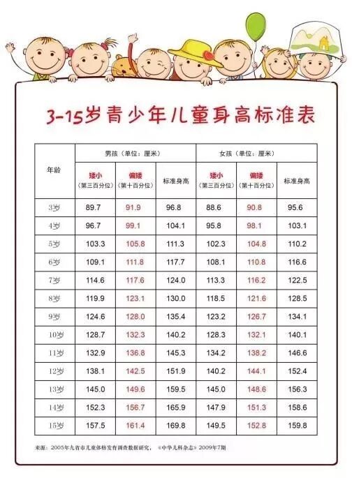 以上是3-15岁孩子标准身高的对照表