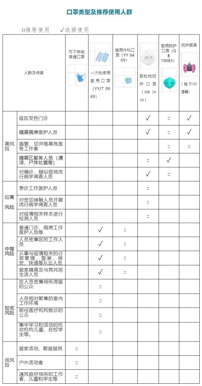 按国家卫健委的建议,在非疫区空旷且通风的环境下,实际上是可以不戴口罩的,当进入人员密集或密闭空间公共场所才需要佩戴口罩;在疫情高发地区,空旷且通风环境下,建议佩戴一次性口罩;进入人员密集或密闭公共场所可以佩戴医用外科口罩或颗粒物保护口罩;有疑似症状到医院就诊时,需佩戴医用防护口罩。棉纱口罩、海绵口罩和活性炭口罩对预防病毒感染无保护作用。