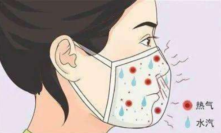 当连续佩戴口罩时,口鼻呼吸产生的水汽滞留,加上天气炎热面部出汗较多,口罩内的皮肤长期处在潮湿、闷热的环境中,角质层过度水合,导致皮肤发白、浸渍、起皱。