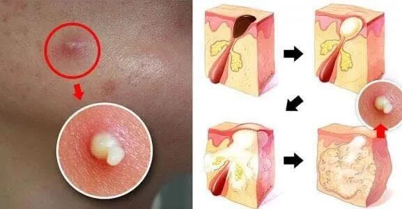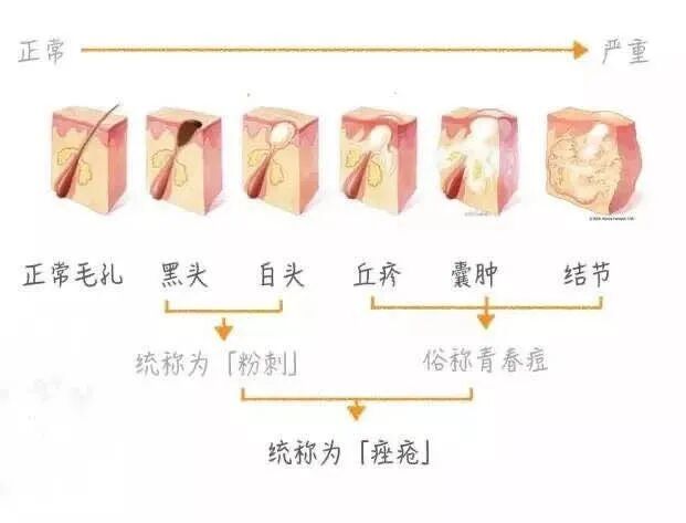 闭口痘痘挤出的是长长的白色条状物质,这个大多是油脂、角质屑以及细菌,有些闭口含有螨虫。而对于脓胞、结节、囊肿型痘痘,挤出来是液体状物质。这个大多是油脂、酸臭的游离脂肪酸等等,而游离脂肪酸会腐蚀刺激毛孔壁引发炎症反应,使局部出现丘疹、脓胞、结节、囊肿。