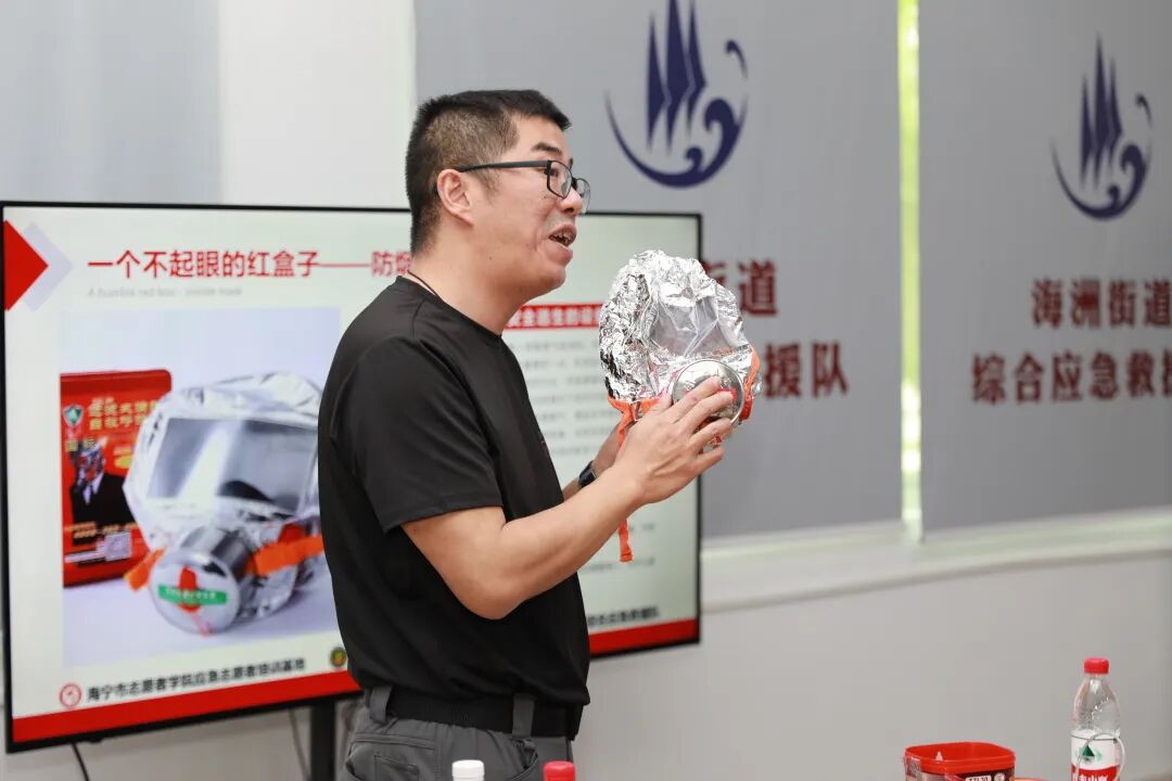 培训课上教官结合真实火灾案例,对近年来高发的锂电池爆燃、车辆自燃等热点事件,告知电瓶车违规充电存在的安全隐患,同时也对避险逃生以及逃生设备的预置和使用等方面进行了深入细致地讲解和分析。