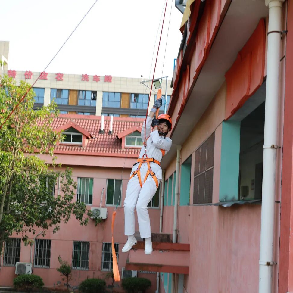 在演练环节中,教官现场示范了火灾发生后如何有序逃生等一系列措施,随后让全体参会人员尝试了绳梯、逃生缓降器等设施的实操训练。通过此次培训,大家初步掌握了高层逃生的基本知识和基本要领,提高了应急逃生技能和现场协调指挥能力。