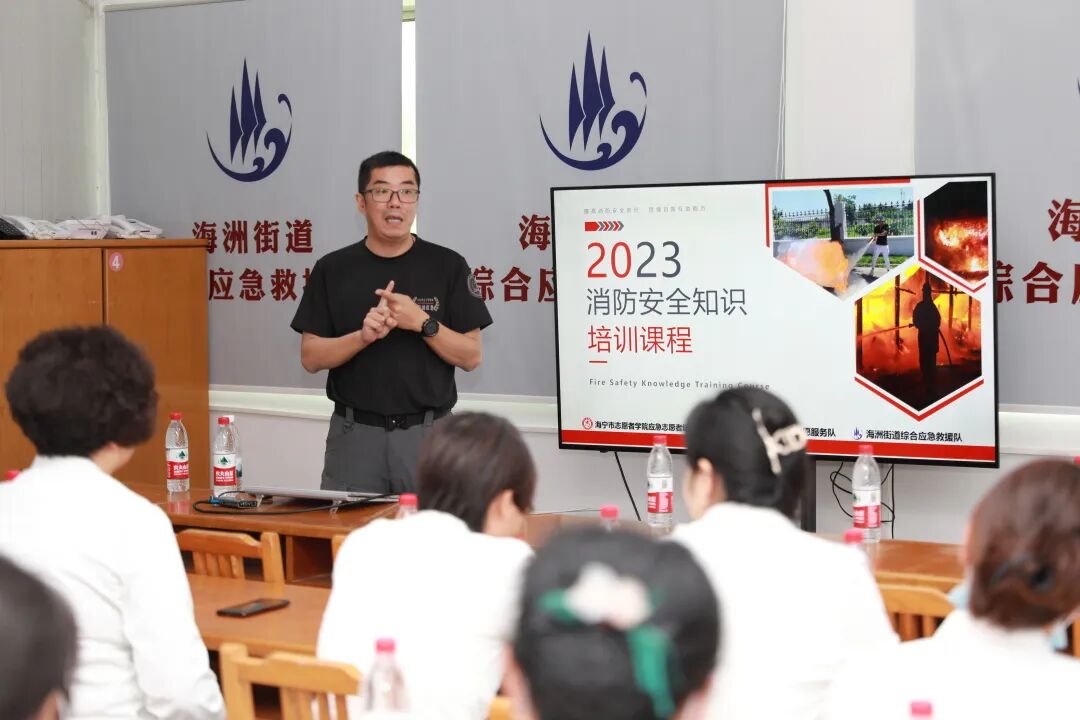 21日下午,全体护士长前往海宁市潮城应急志愿服务队基地开展消防安全知识培训及应急疏散逃生演练。