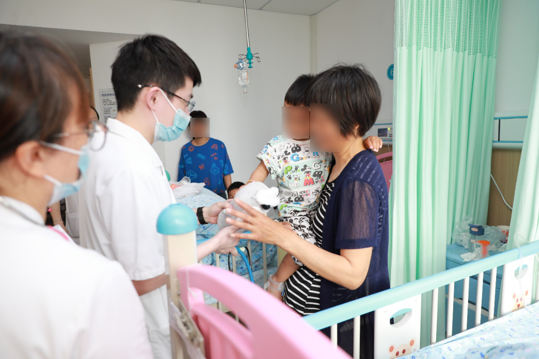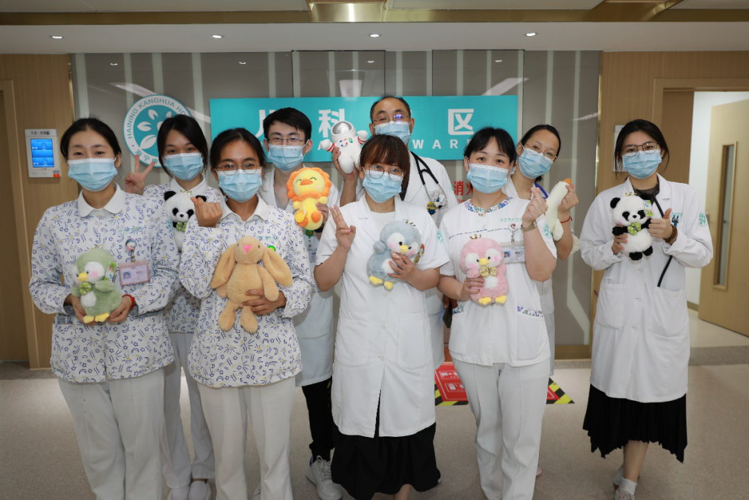 早晨,儿科医护人员组成“爱心礼物”发放团队,在儿科门诊以及各病房送礼物。