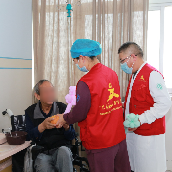 尊老爱幼是中华名族的传统美德,不论初入中年还是年近花甲,不论青春年少还是已入耄耋,童年是每个人都曾经过的旅途。童心、童趣与年龄无关。在院党委“强引领、优服务、争先进”的感召之下,我院全体党员秉承“一切为了人民健康”的服务理念,在这个充满童趣的节日里,,综合四党支部党员志愿者也走进病区,陪老人聊天,为“老小孩”们送上了祝福和节日礼物,希望我们的“老小孩”平平安安,安度晚年。