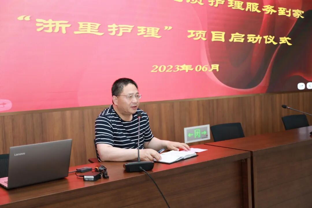 为贯彻落实省委关于数字化改革“一地创新,全省共享”的决策部署,2022年,省卫生健康委将“互联网+护理服务”列入卫生健康领域数字化改革重大项目,在全省上线发布“浙里护理”应用,以点带面推动建立健全“浙里护理”优享医护应用全省共享机制。为推动医疗卫生服务模式的转变,推广“互联网+医疗健康”应用,6月21日,我院举行互联网+护理服务平台“浙里护理”项目启动仪式。