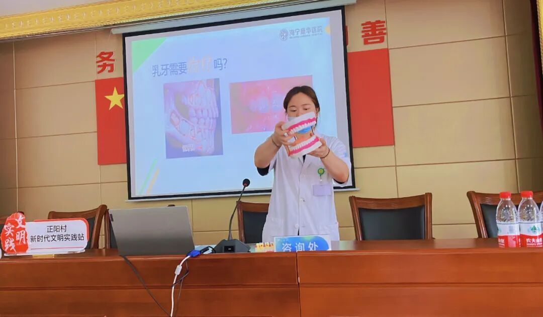 现场活动,由海宁康华医院口腔科健康管理师俞云贤,为现场的儿童们带来了一场生动有趣的口腔健康公益讲座。小俞老师通过PPT的形式,为现场的儿童们讲解了牙齿的结构、什么是蛀牙以及如何预防蛀牙等知识。此外,还开展了有奖问答,给答对的儿童们带来一份份精美的礼品,鼓动大家积极参与互动,踊跃举手发言。