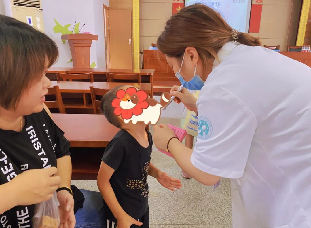 活动末尾,小俞老师为现场的每位儿童进行了口腔筛查,并将筛查情况告知小朋友和家长,呼吁家长警惕龋齿危害,让孩子及时治疗,并为每位小朋友送上了一份爱牙大礼包,鼓励他们正确刷牙,关注自己的口腔健康。