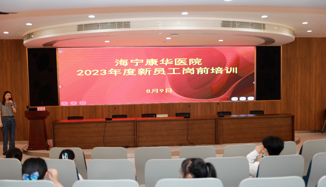 8月9日下午,培训在会议室拉开序幕。海宁康华医院党委副书记/副院长金园对各位新职工的到来表示了热烈的欢迎,希望大家能在康华的平台上尽情展示自己、提高自己,并以“加强医院文化建设 打造人文健康之家”为题向全体新员工开启了培训第一课,介绍了医院文化的构成、要素、内涵和医院的核心价值观等内容,希望新员工们不断锐意进取、求真创新,在工作中收获成长,与医院共铸辉煌。