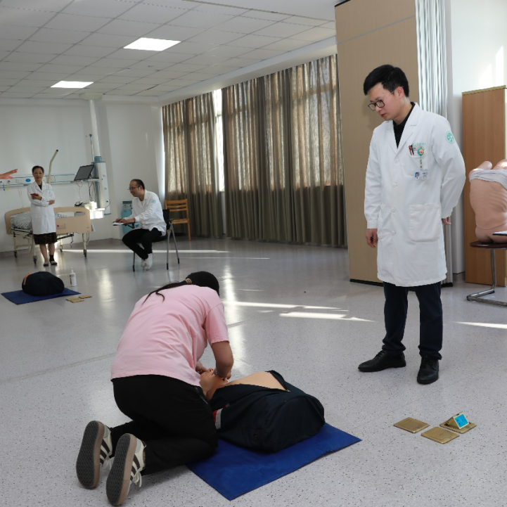 此次培训,由朱龙伟、任平平、毛施文、姜春安四位取得BLS证书的医生担任培训及考核老师。培训中,老师们采用“理论+演示”方式,对心肺复苏各环节操作流程和技术要领进行讲解及演示,参训人员在“模拟人”上进行实操演练。每位老师对参训人员操作过程中存在的问题,耐心指导并纠正,在考核过程中认真对照标准,对每一个操作环节详细记录、打分,并现场点评,圆满完成了培训考核任务。
