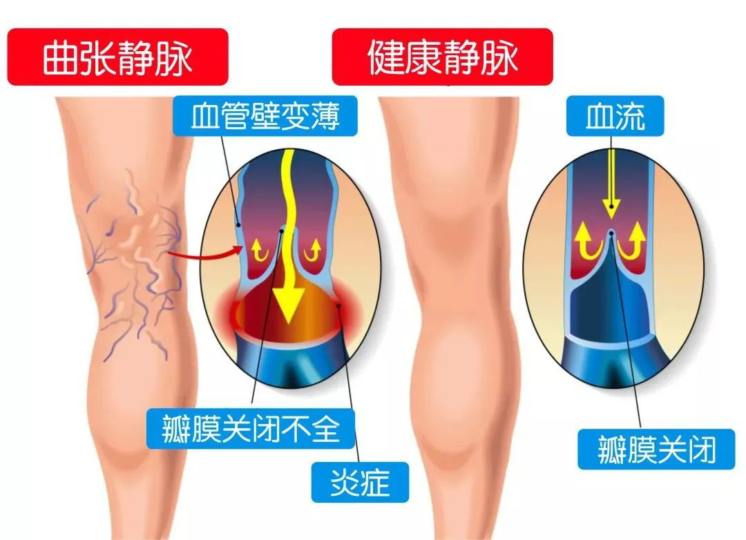 静脉曲张是静脉内长期承受异常高压的结果。高温加剧了这种情况。