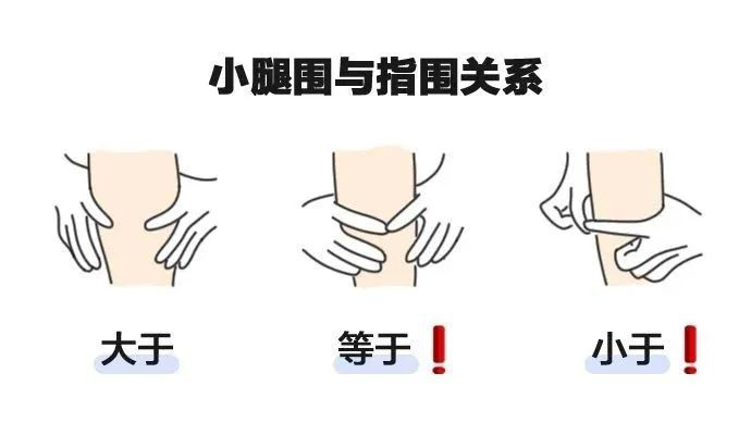 如果没有专业的测量工具,我们也可以通过小腿肚测量法(指环测试),通过测量小腿围度,判断肌肉情况。